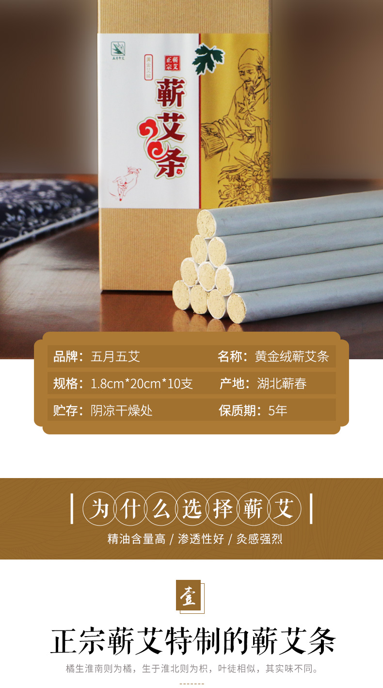 五月(yuè)(yuè)午艾黃(huáng)金(jīn)絨蕲艾條(标準裝)